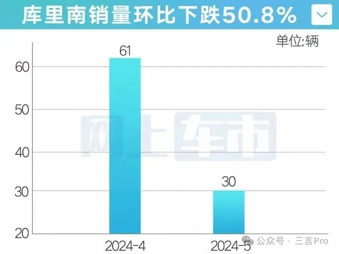 其中,庫裏南5月售出30台,環比大跌58%;閃靈5月賣出4台,環比大跌75%。