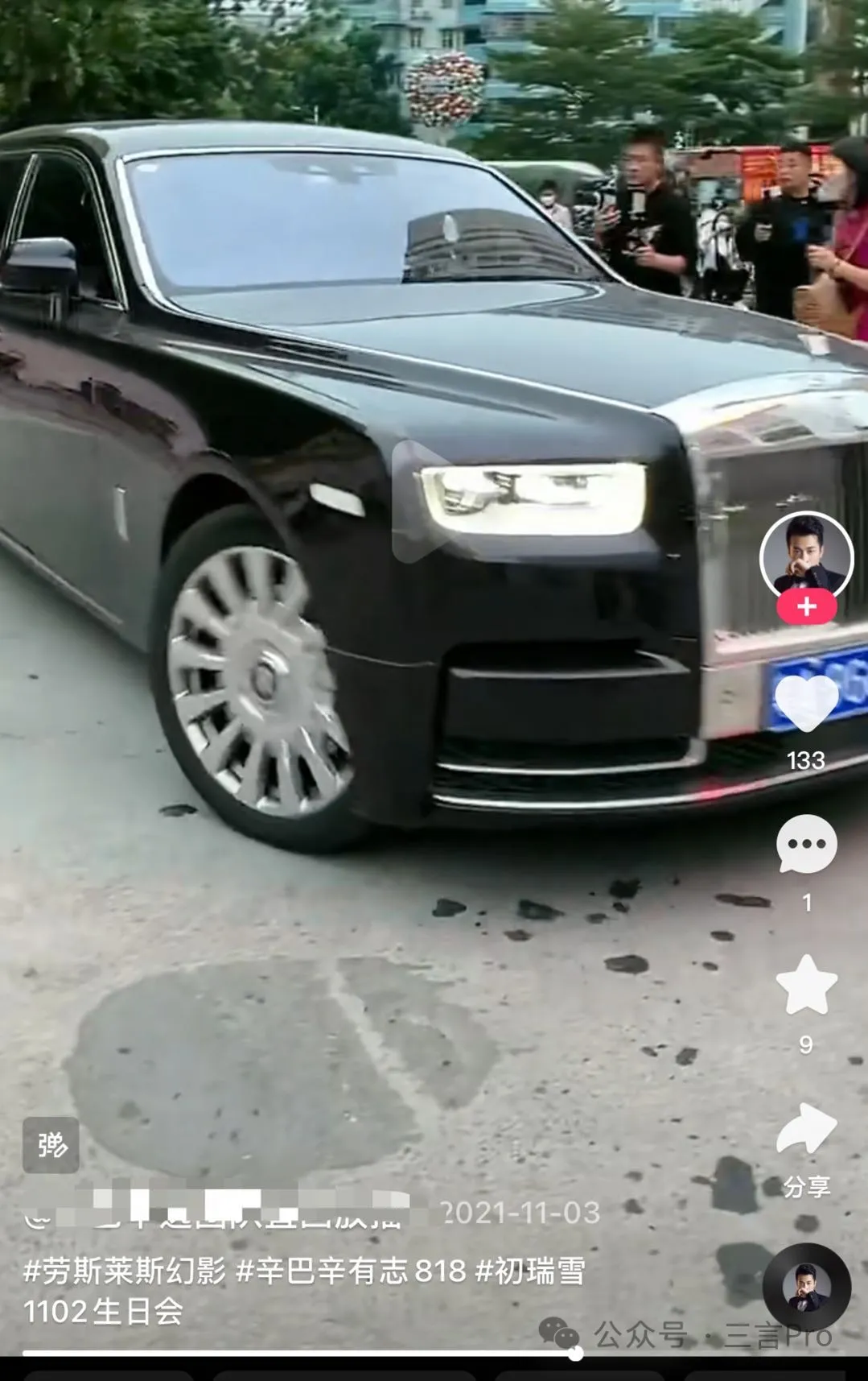 2023年12月,網紅花33在社交平台上宣佈自己提了一輛價值1300萬的勞斯萊斯幻影加長版,盡顯豪華。
