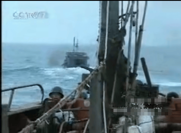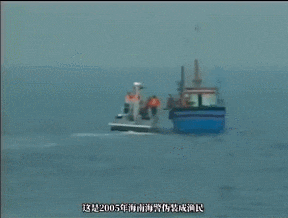 ▲2004年北部灣開始頻繁出現越南漁船持槍襲擊中國漁船,打死打傷中國漁民,搶奪中國漁民的漁網魚獲。中國海警化妝搭乘漁船與越南海盜船展開交火。上圖為中國海警向越南海盜開槍射擊。