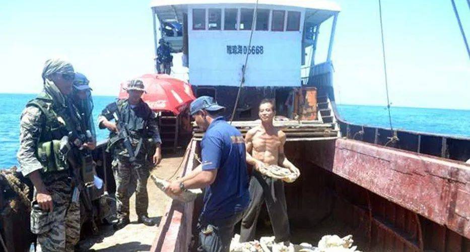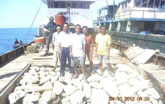▲2012年4月10日,菲律賓“德爾畢拉爾”號護衞艦在黃巖島的潟湖中抓捕12艘中國漁船,逮捕中國漁民,並要求漁民簽字畫押“入侵菲律賓”的文件。中國海監兩艘船和守衞美濟礁的中國漁政船接到求救信號後,趕到黃巖島對峙併成功救回中國漁民。