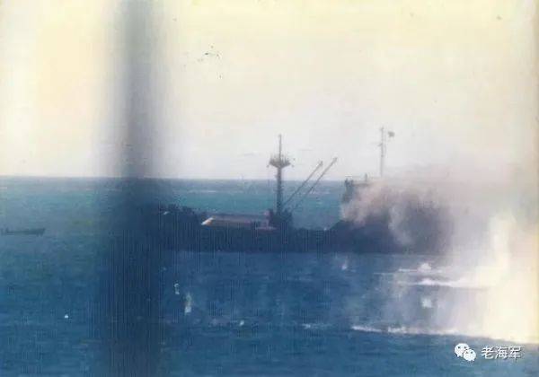 ▲1974年1月18日西沙海戰前一天,南越海軍HQ4“陳慶瑜號”軍艦,在西沙永樂羣島撞擊中國漁船南漁407的瞬間。左下角可以看到南越軍艦側舷機槍指向中國漁民,中國漁民鎮定的站在船上,其中一人向越軍揮舞拳頭。