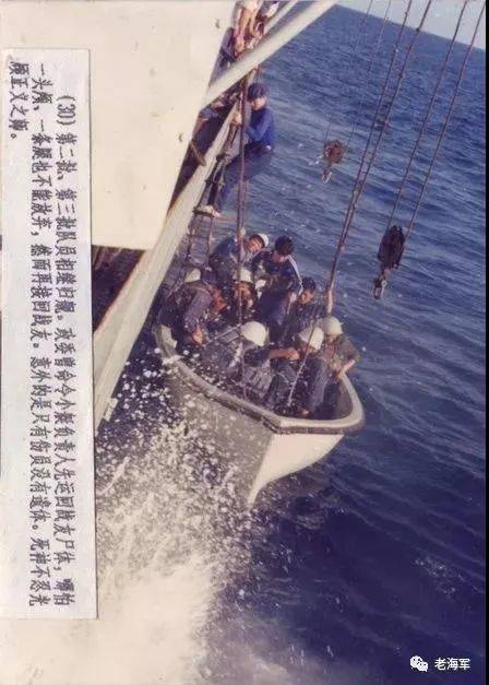 ▲登礁的隊員乘坐小船返回軍艦,政委曾命令小船先運回戰友屍體,再接回其戰士,令他意外的是隻有傷員沒有遺體,我軍零陣亡。