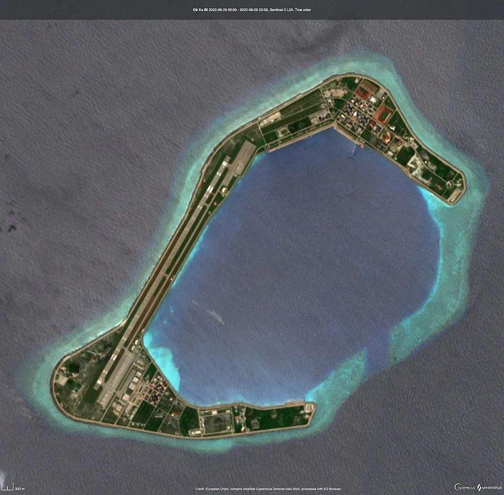 ▲2018年的渚碧礁面積已經超過4平方公里,成為僅次於永暑島的南沙第二大島,並帶有一條3千米的機場跑道。