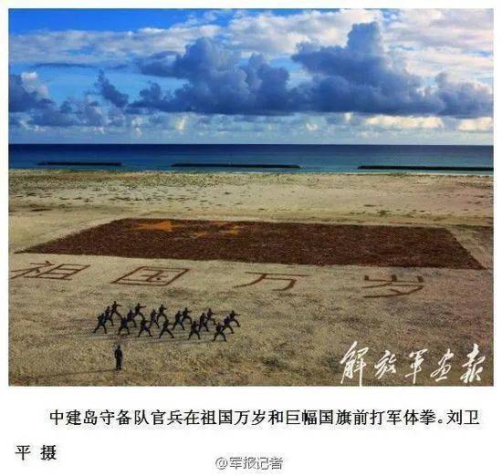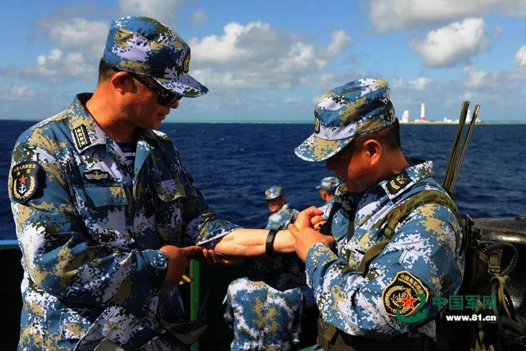 ▲2016年時隔28年,已經成為大校的楊志亮重登赤瓜礁,向守礁戰士展示當年的傷疤(2019年楊志亮升任海軍中將)