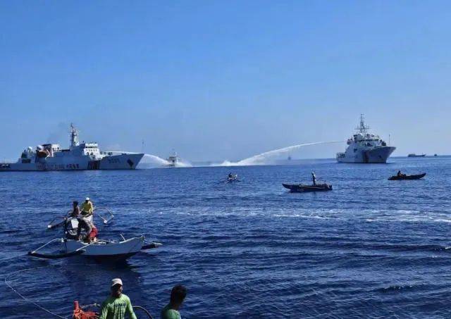 ▲近些年,隨着中國軍艦的快速下餃子,海上實力與周邊小國的差距已經極為明顯。上圖為兩艘比菲律賓海軍旗艦還大的中國海警船,在用水炮驅逐菲律賓補給船。