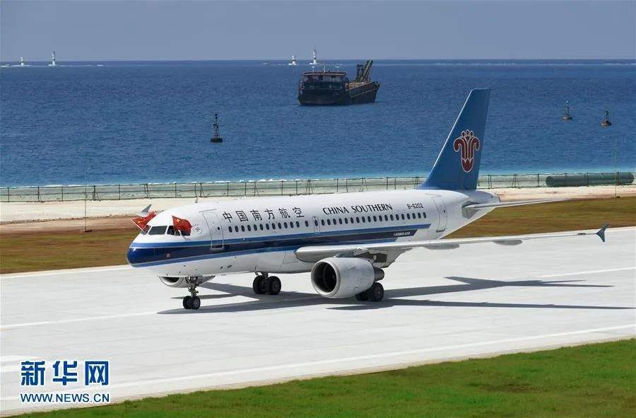 ▲2016年7月13日,中國兩架民航客機分別在美濟礁和渚碧礁新建機場平穩着陸,試飛成功