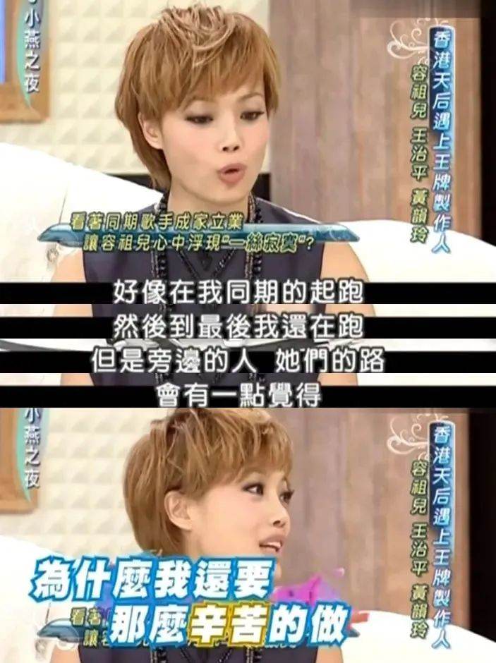 容祖兒在成為天后後,卻羨慕早年和她同期籤英皇,如今已為人母的前同事。她甚至抱怨:為什麼我還要那麼辛苦的做(事)。