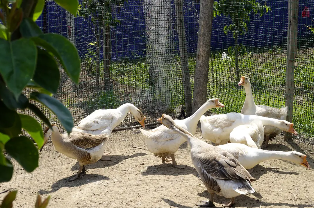周愛華果園裏養的獅頭鵝/圖源:鹽財經記者 攝