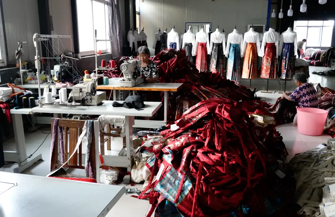 曹縣人對漢服尤其是馬面裙的青睞,不僅僅源於對傳統文化的自信。據曹縣電商服務中心統計,企業從每件馬面裙上獲得的利潤少説也能達到30%左右,人們生產後通過電商銷售致富,獲得感很強;從業者多年積澱而來的電商基因和市場前瞻性,使曹縣能夠承接住馬面裙的流量。