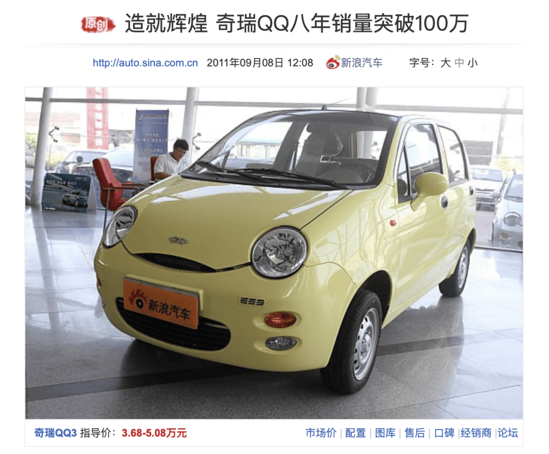 還一度佔據奇瑞總銷量的80%,締造了中國第一個自主汽車產品的銷量神話。