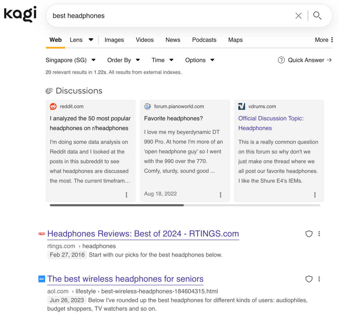 目前來看, Kagi 發展勢頭非常好。它的社區很活躍,那些利用 SEO 跑到結果前列的垃圾網站,很快會被官方 Ban 掉。