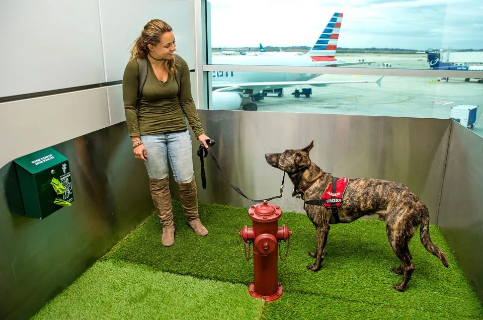 美國夏洛特道格拉斯國際機場的寵物休息區。|petfriendlytravel.com