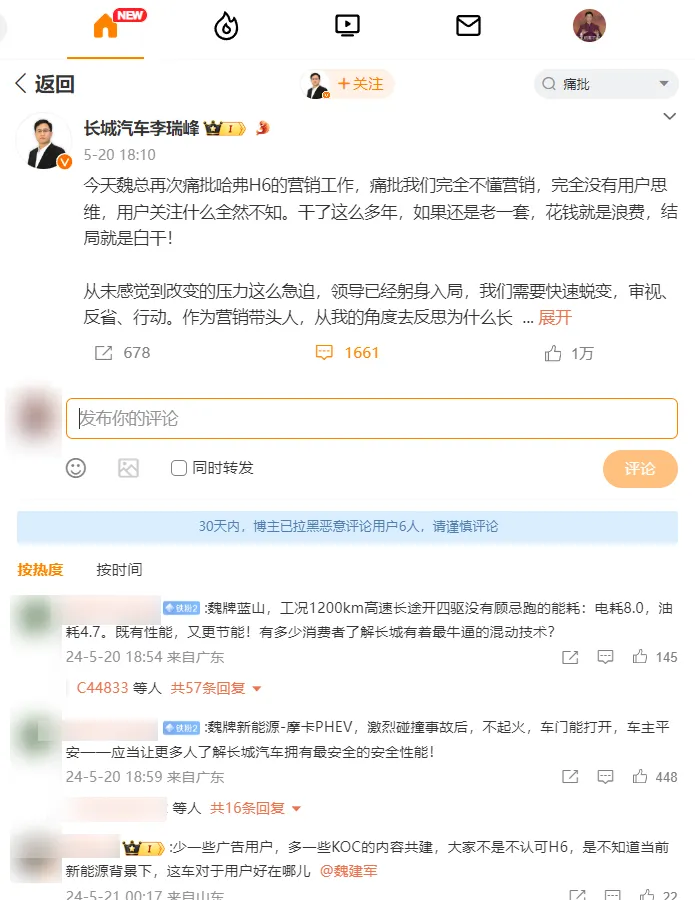 不知道長城的管理層是不看評論,還是看到了但覺得這個信源不靠譜,不考慮採取針對性策略解決問題,提升用户體驗,一再強調當前車企間無序競爭,惡意競爭,給行業帶來了混亂,長城一身正義絕不參與,這種態度下,不禁令人好奇,長城想要參與的是什麼樣的競爭,提升用户體驗這個賽道要不要考慮一下。