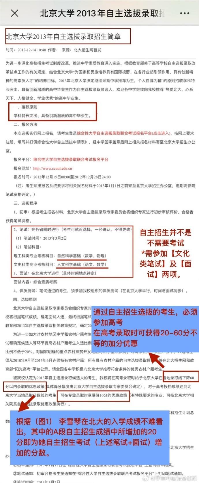 我們尊重並歡迎合理的質疑,但我們也呼籲讓理性之光引導我們前行,避免無端的猜測給他人帶來傷害。對於網絡上流傳李雪琴通過游泳特招進入北京大學的言論,存在錯誤及誤導! 李雪琴錄取成績中沒有體育加分,故在此為大家補充説明李雪琴的高考成績,什麼是自主招生,自主招生對應的優惠政策及選拔條件! 李雪琴的成績,有據可查,有實可依,是教育部門嚴格審核後的公開信息,不容置疑。