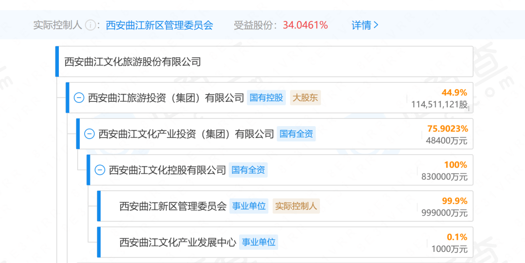 而據企查查,西安曲江新區管理委員會持有曲文控99.9%股份。穿透股權後,曲文控是曲江文旅控股股東的股東。