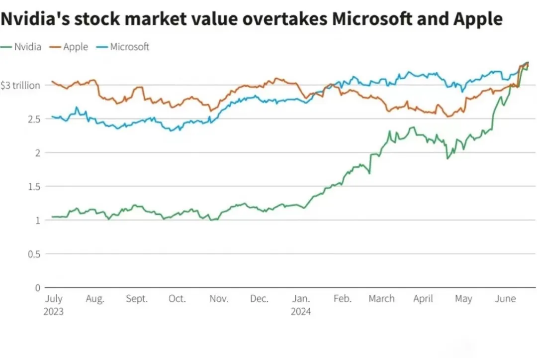 英偉達股價超越微軟、蘋果,成為全球市值第一大企業之後,近日出現下跌,失去第一位置。股市必然有波動,股價必然會漲跌,短期中期英偉達可能重回市值第一。不過比市值登頂更重要的是產業登頂,英偉達毫無疑問已經成為智能時代基礎設施的第一驅動,AI生態位的算力王者,超級智能大模型、機器人、智能汽車、AI PC、元宇宙等多領域計算架構的主導者。