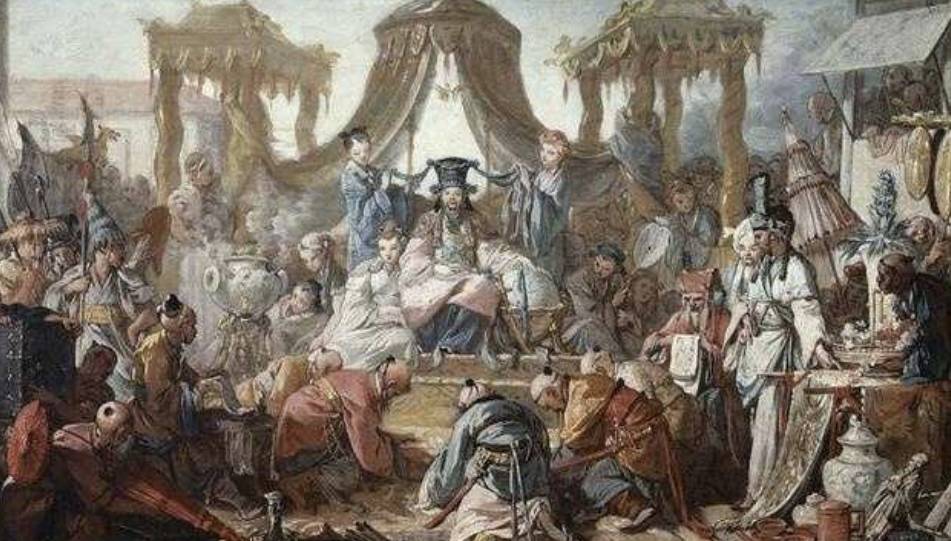 這種想象錯位並不是到了20世紀才開始的,而是一直就有,比如下面這幅圖,就是歐洲人繪的中國皇帝上朝圖。這有多離譜,就不用我説了: