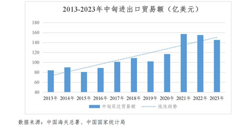 中國是匈牙利在歐洲以外最大的貿易伙伴,匈牙利是中國在中東歐地區最主要的貿易伙伴之一。