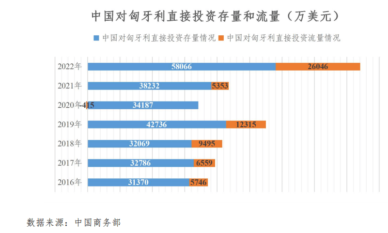 2023年,中國對匈牙利直接投資為76億歐元,佔匈牙利吸引外國直接投資總額的58%。