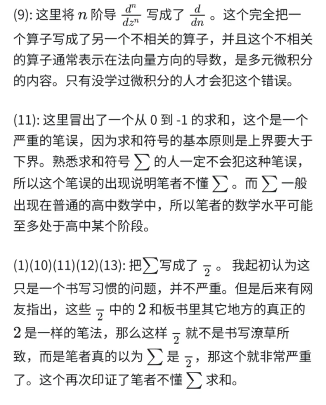 基於這些分析,我們可以斷定,書寫這個板書的人的數學水平至多是高中水平,完全沒有學過數學分析,更不用説視頻裏提到的 Evans 的 PDE 教材這種以數學分析為基礎的數學系的研究生課程。