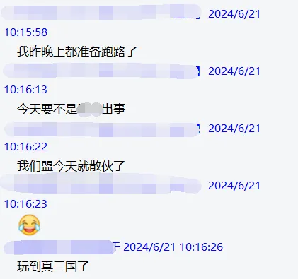 然後另外三個羣友也開始嘰嘰喳喳説起了他們同盟最近的紛爭。
