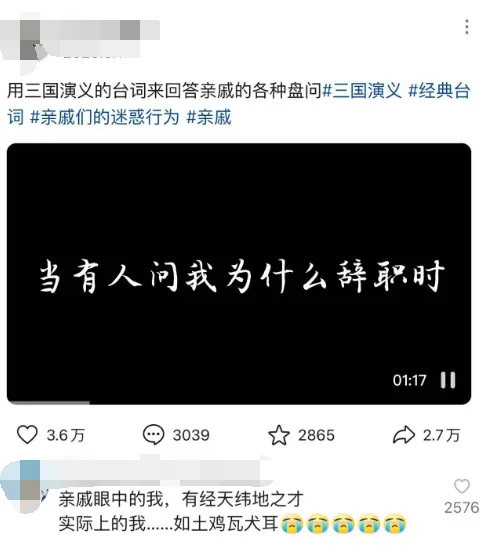 從來沒有停過的“三國熱”,在本就傳播快的短視頻賽道格外的熱鬧,尤其是94年經典的《三國演義》電視劇,成為了各個創作者最好的素材,問答一放,台詞一剪輯,就是當前短視頻平台流行的“用《三國演義》來回答XXX提問”主題視頻。
