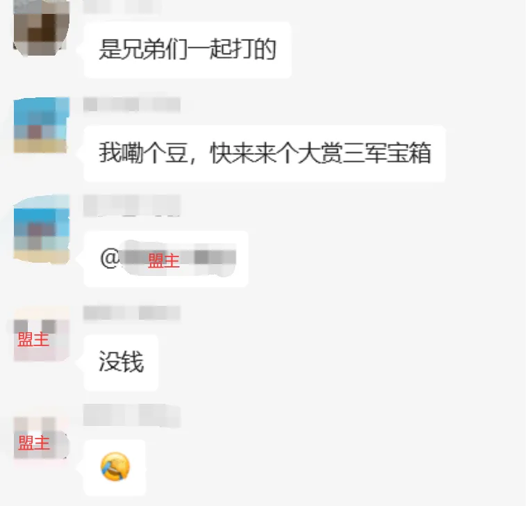 也因此大貓盟裏一下子就沸騰了,大家期待着寶箱的發放,但隨之而來的是盟主一句“沒錢”,和發起的“羣收款”。