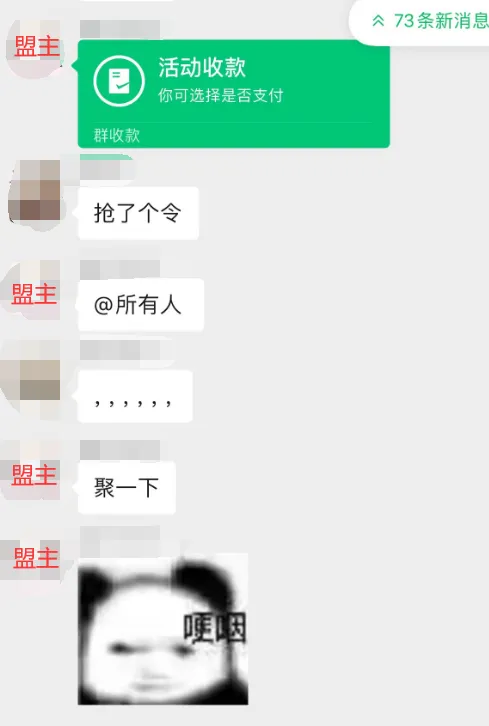 更戲劇化的是,還沒等大貓他們跑路,盟主突然又賣盟了,大貓一邊吃瓜,一邊被折磨地不勝其擾,最後發出了“5個大學生管理,我就受不了了”的感嘆。