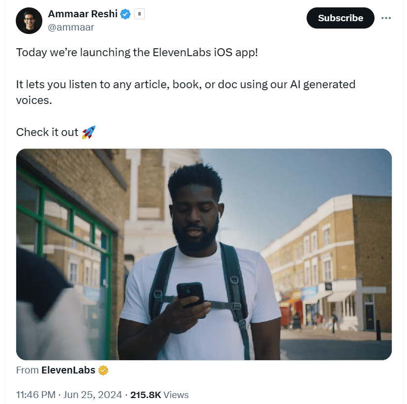 5)ElevenLabs推首個iOS應用Reader,可將任何文本轉化為AI語音