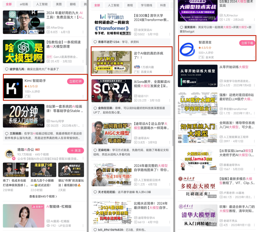 當AI學習內容井噴式爆發,落到B站用户層面的認知也逐漸清晰:學AI,來B站。