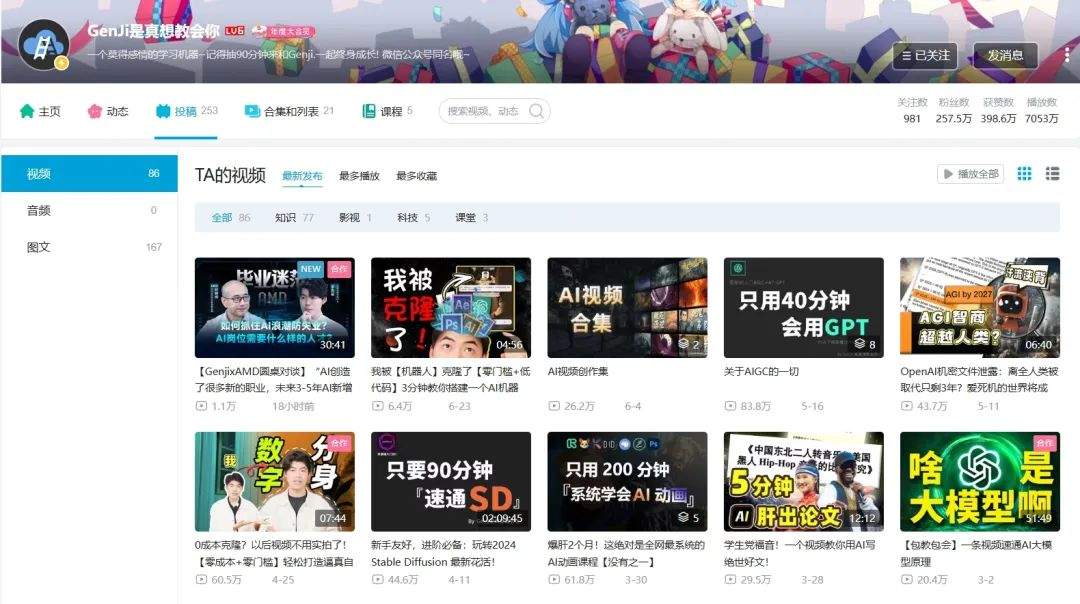 圖:B站百大UP主“Genji”AI相關視頻截圖