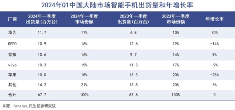 而且,華為手機的增長趨勢還在延續,業內人士預測2024年華為手機出貨量有望升到6000萬部,成為業內增長速度最快的手機品牌。