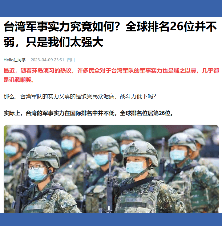 網絡上已經有很多文章説台灣軍隊的戰鬥力,我在這裏説的是“軍人的精神與戰鬥力”。