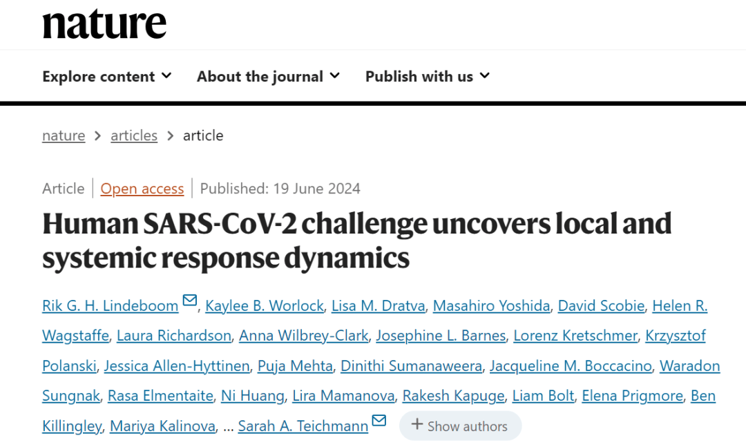 1.Lindeboom RGH, et al. Human SARS-CoV-2 challenge resolves local and systemic response dynamics. Nature. doi:10.1038/s41586-024-07575-x.