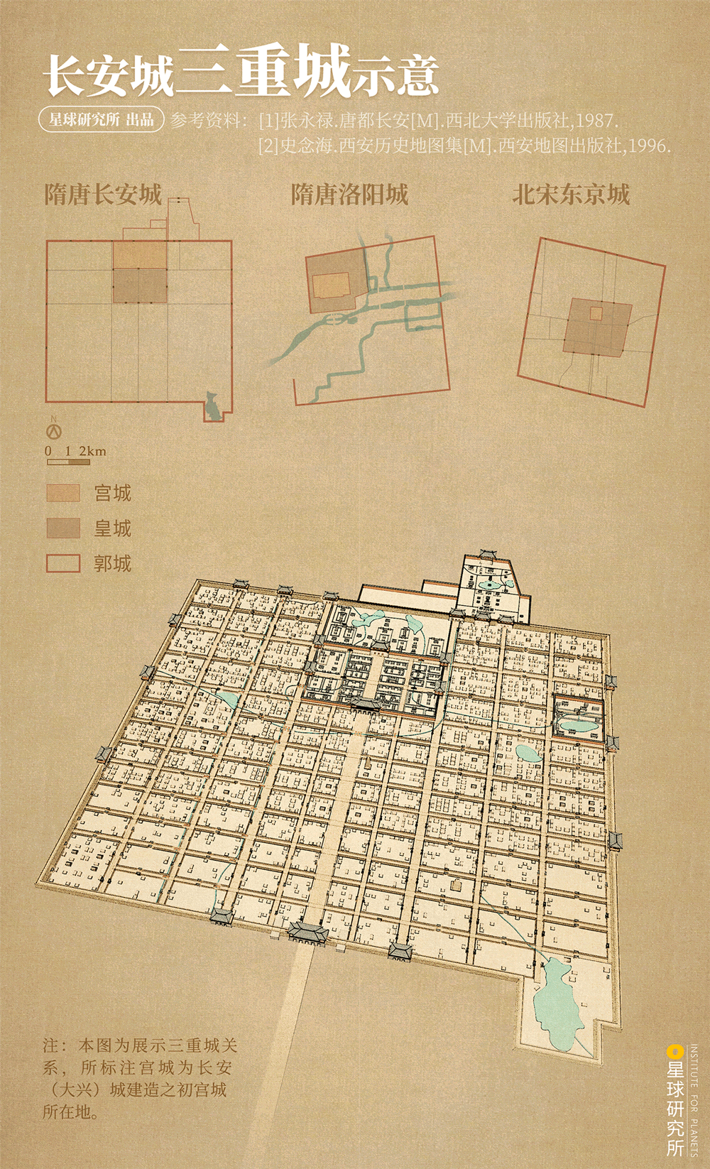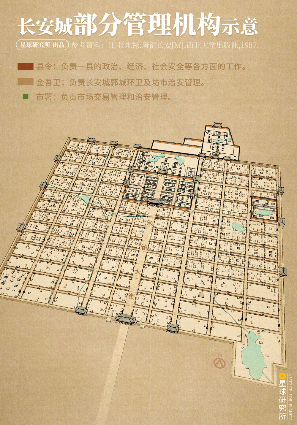 (請橫屏觀看,長安生活圖鑑,該圖為長安三個主題的藝術拼接,非真實空間佈局,製圖@阿土/星球研究所)