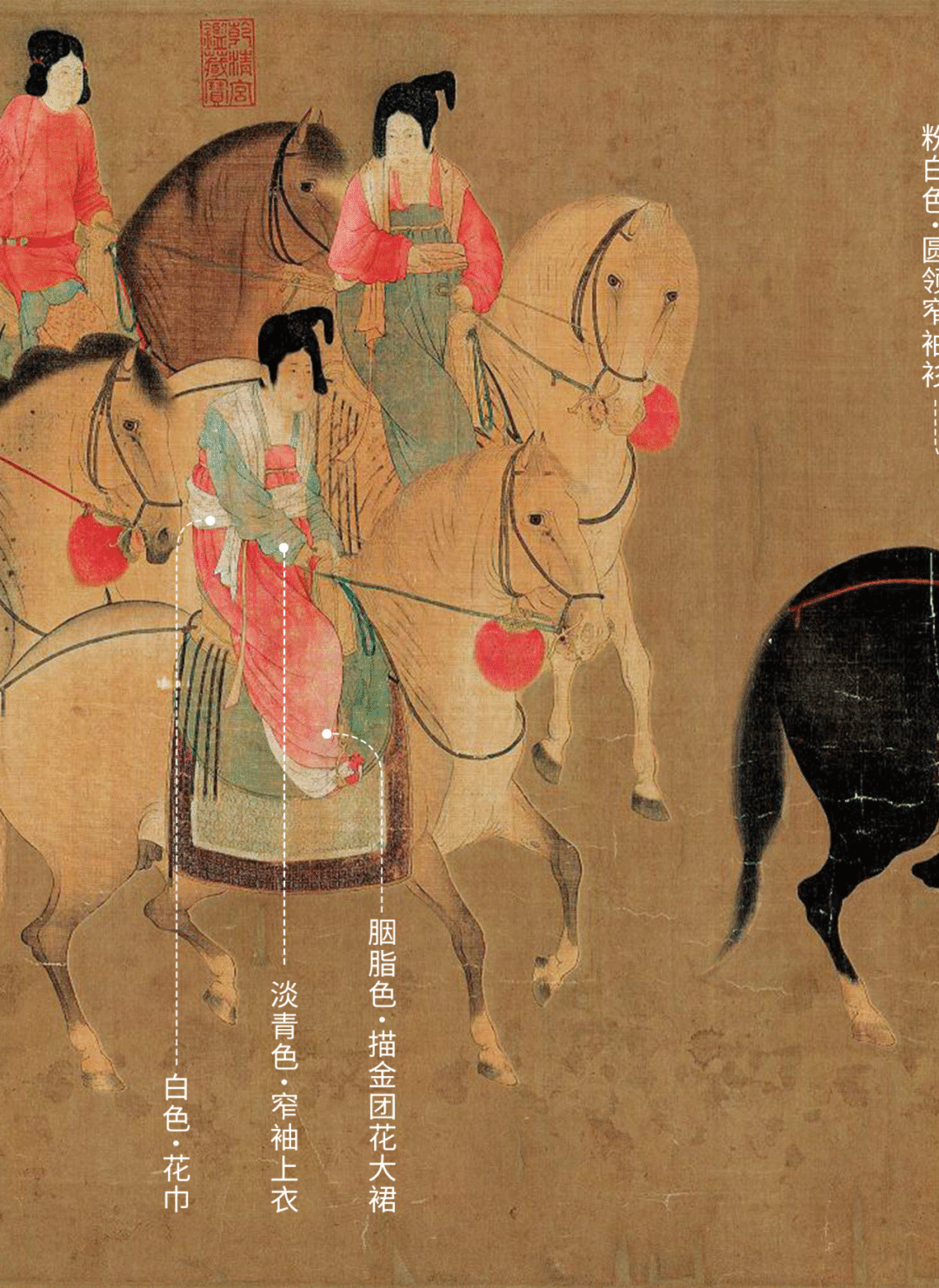 (《虢國夫人遊春圖》,圖中誰是虢(guó)國夫人暫無定論,圖片來源@Wikimedia commons,製圖@王申雯&阿容/星球研究所)