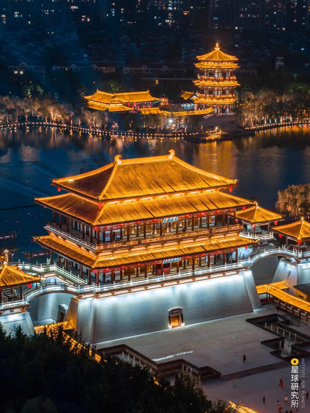 (請橫屏觀看,曲江夜景,曲江流飲為長安八景之一,攝影師@蘇京,製圖@阿容/星球研究所)