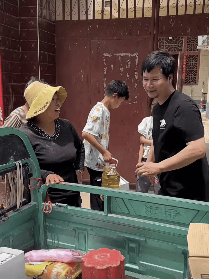 米粒媽媽拿出蘇某賠付的錢,再添了一些錢買了米麪糧油和牛奶,分發給當地條件不好的老人和留守兒童,一共花費7000餘元。