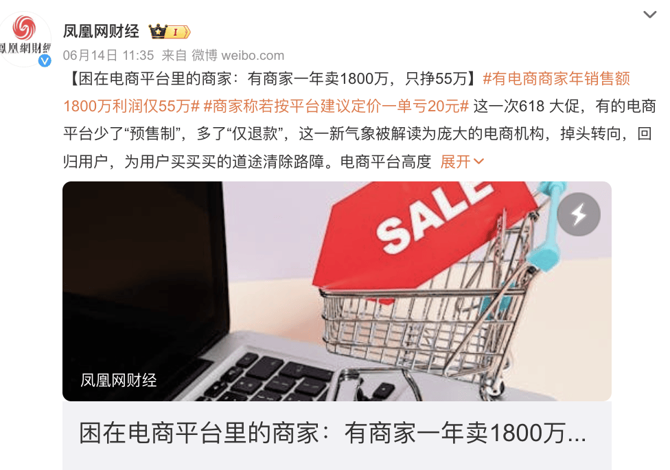 鳳凰網財經:困在電商平台裏的商家:有商家一年賣1800萬,只掙55萬