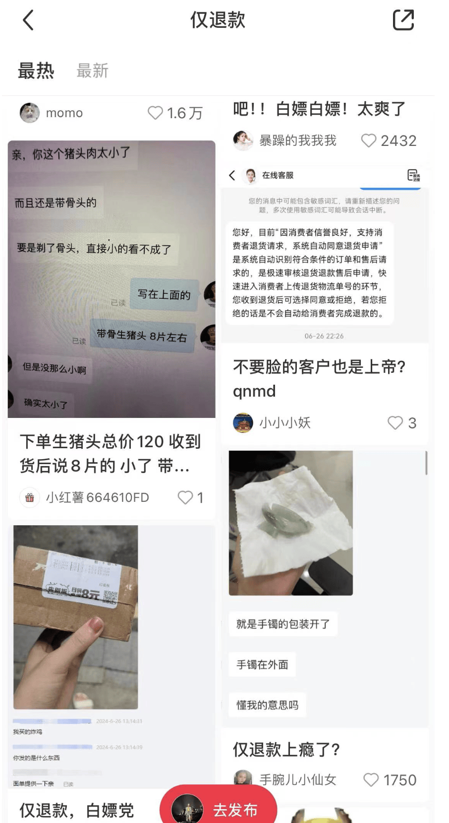 圖源:小紅書#僅退款 條目