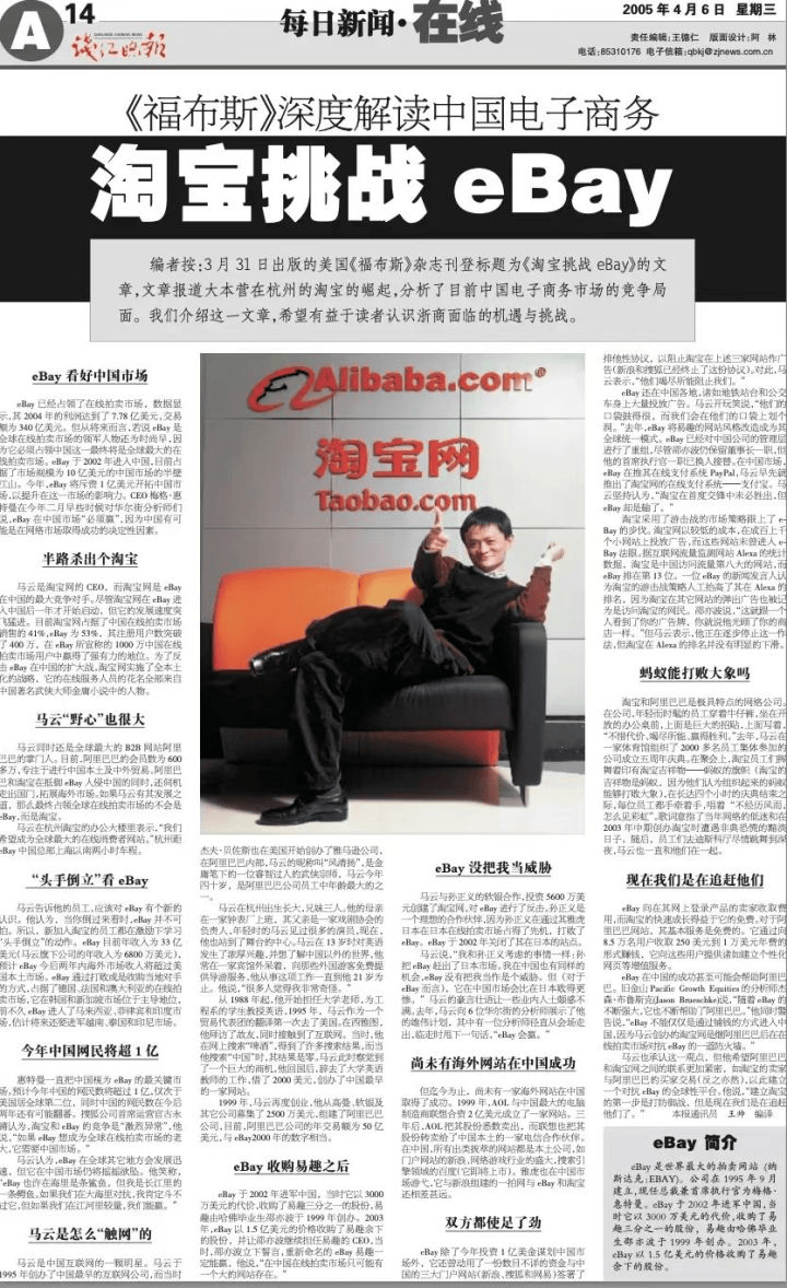 馬雲打算做C to C業務遭到所有人反對,因為當時eBay的中國公司易趣已經佔領電商90%的市場份額。