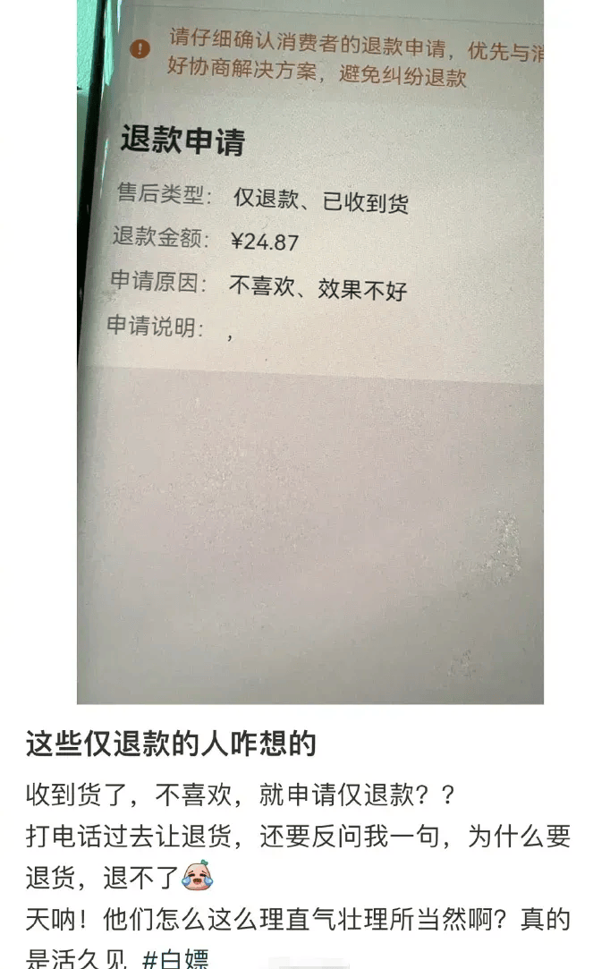 現在又多出了“僅退款”的售後機制更讓商家苦不堪言。