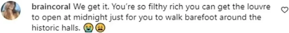 但另一些網友的評價都不太好聽了,因為他們覺得肯豆能夜遊盧浮宮純屬是因為特權或鈔能力;