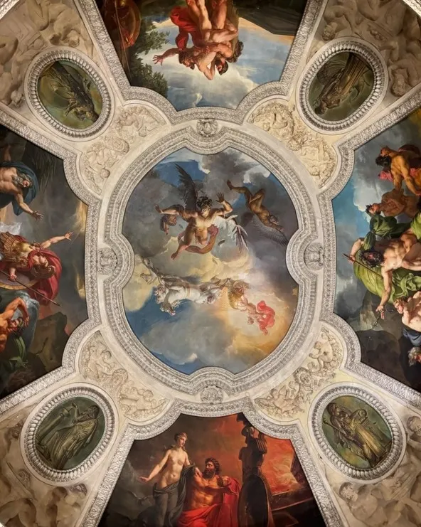當時金也分享過照片,比如她們母女倆的合影,背景是盧浮宮華麗的天花板。