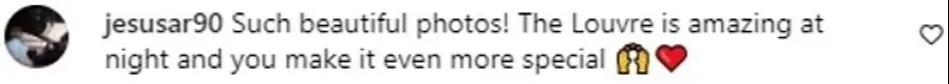 “照片太漂亮了!夜晚的盧浮宮真棒啊,而你讓它更特別了。”