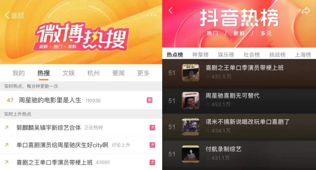 現場觀眾與喜劇迷們的追綜熱情,也再次把這檔剛開始錄製的節目,推上了微博熱搜,#喜劇之王單口季演員帶梗上班# #諾米不搞新説唱改玩單口喜劇了# #郭麒麟吳鎮宇新綜藝合體#等路透話題更是在社交媒體上引發熱議。
