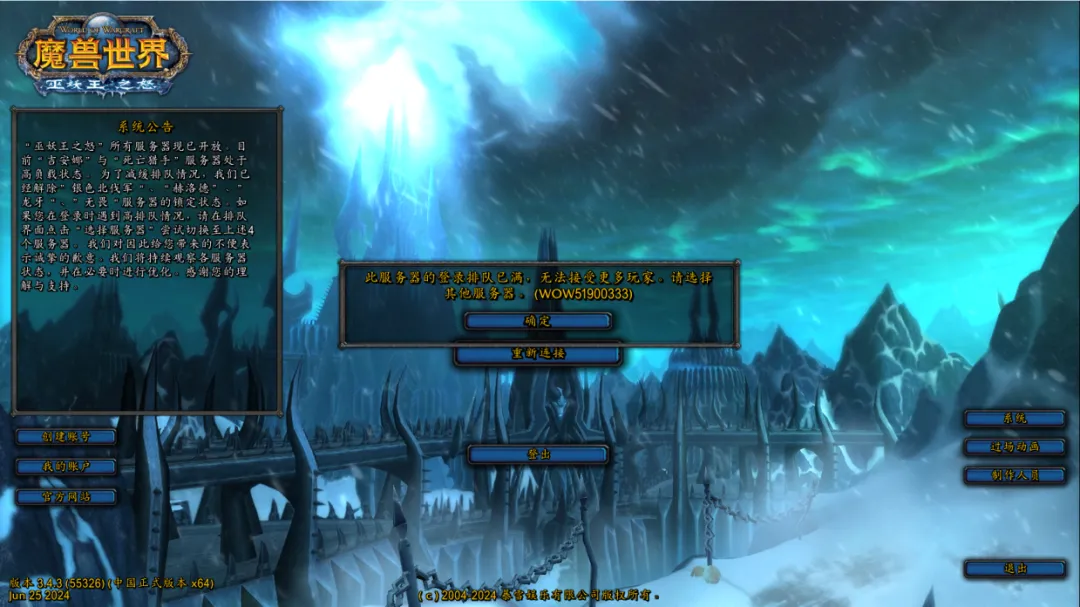 然後,“巫妖王之怒”懷舊服特有的冷色調UI和“此服務器登錄排隊已滿,無法接受更多玩家”的系統提示,就把我拒在了新服“吉安娜”門外。我的心情也從無比激動變成了有點哭笑不得——你看,暴雪還是那個開服以後頭幾天一定會有一堆幺蛾子的暴雪,我塵封了五百多天之久的所有《魔獸世界》記憶,這麼一下子就全找回來了。