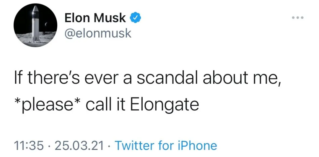 馬斯克曾在推特上發文稱:如果是關於他的醜聞,請稱之為埃隆門