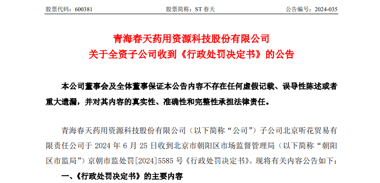 杜總忙着鞠躬的時候,上市公司ST春天(600381.SH,原青海春天)又有子公司被罰了80萬。