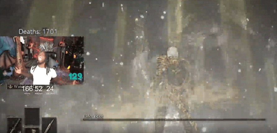 不過在心理治療結束6小時之後,Kai終於還是憑藉實力,在20萬名觀眾的見證下擊敗了《黃金樹幽影》的最終BOSS,成功通關了這款以難度著稱的遊戲,此時Kai的直播時長已經來到了99小時,死亡次數多達1070次。